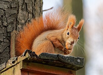 ![]() A red squirrel (Sciurus vulgaris) eating a nut in Bednarski Park (Kraków, Poland). Change image |